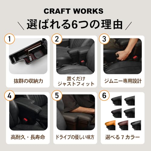 CRAFT WORKS ジムニー用アームレストは高い収納力と快適なドライブをサポートする優れた製品ですが、適合車種の確認や素材の特性、保証内容の理解が必要です。