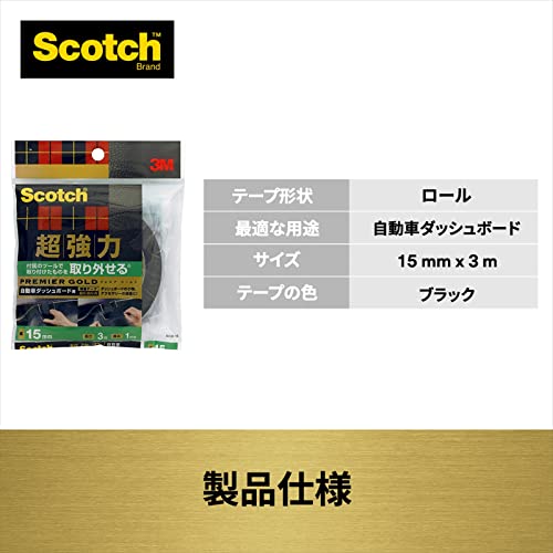 そこで注目したいのが、3Mの「スコッチ 取り外せる 超強力両面テープ プレミアゴールド ダッシュボード用」(幅15mm、長さ3m)です。