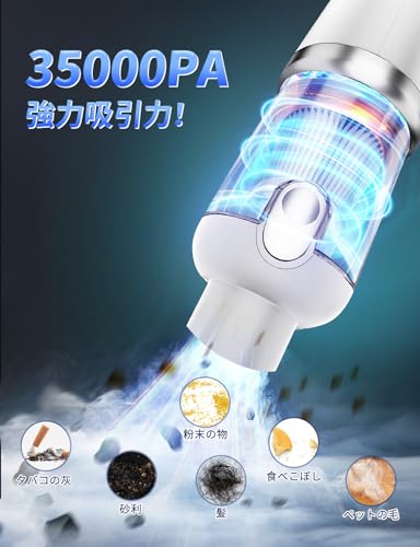 コードレスで軽量、かつ35000PAの強力な吸引力を備えているため、車内はもちろん家庭内のちょっとした掃除にも活用できます。
