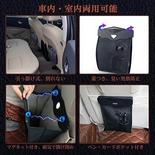 この小型車用ゴミ箱は省スペース設計でありながら収納力が十分で、助手席や後部座席にも設置しやすいのが特徴です。