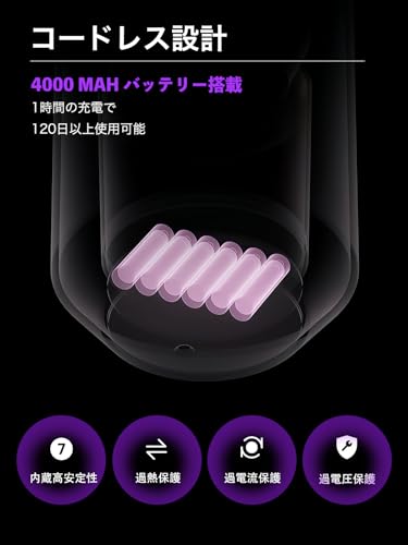4000mAhの大容量バッテリーを搭載し、ケーブルなしで動くコードレス設計が特徴です。