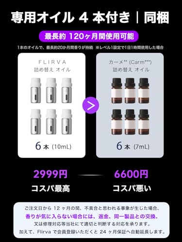 実際に約20mLの香料で通常より長い時間使用でき、結果として買い替え頻度が減るため経済的負担も軽減されます。