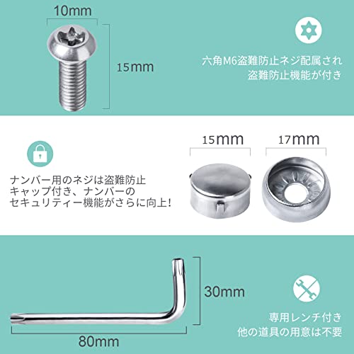 • 盗難防止機能:六角形の盗難防止ネジとキャップが付いており、取付後もナンバーがしっかりと固定され振動でパタパタしません。