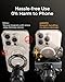 重力式の自動ロック機能により、両側のアームがスマホの幅に合わせてしっかり固定されますが、リングがあると滑りやずれの原因となり安定性が損なわれる恐れがあります。