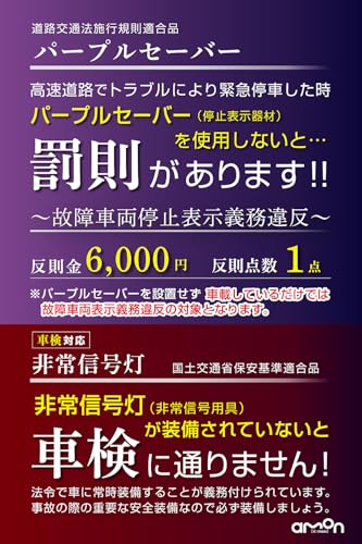 緊急時の安全確保に欠かせないパープルセーバーと車載非常灯セットは、高速道路での事故リスクを軽減する実用的なアイテムです。